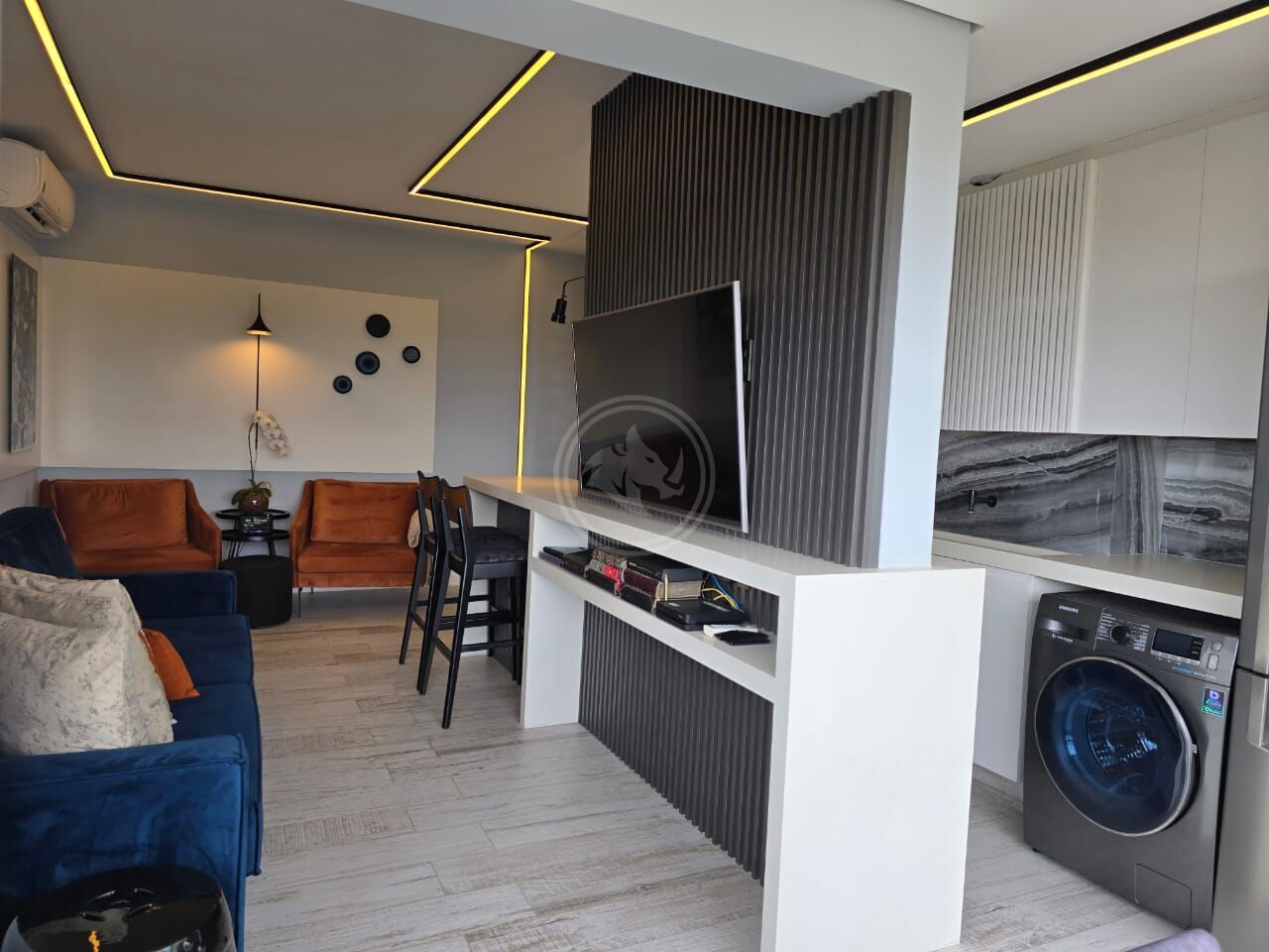 * Ar-condicionado na área de convivência integrada, cozinha e Quarto Suíte